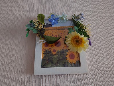 2025年8月5日(火) テーマ:アーティシャルフラワー ~ 額アレンジメント 花材:ガーベラ、アジサイ、ラベンダー、アスター、カスミソウ、葉もの類 |