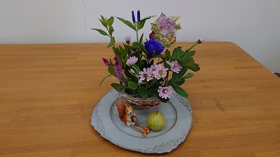 2024年1月9日 テーマ:新年をお祝いして 花材:チューリップ、マーガレット、スィートピー、ピペリカム、ラベンダー、お祝いピック 今年1年の願いをこめて、アレンジ |